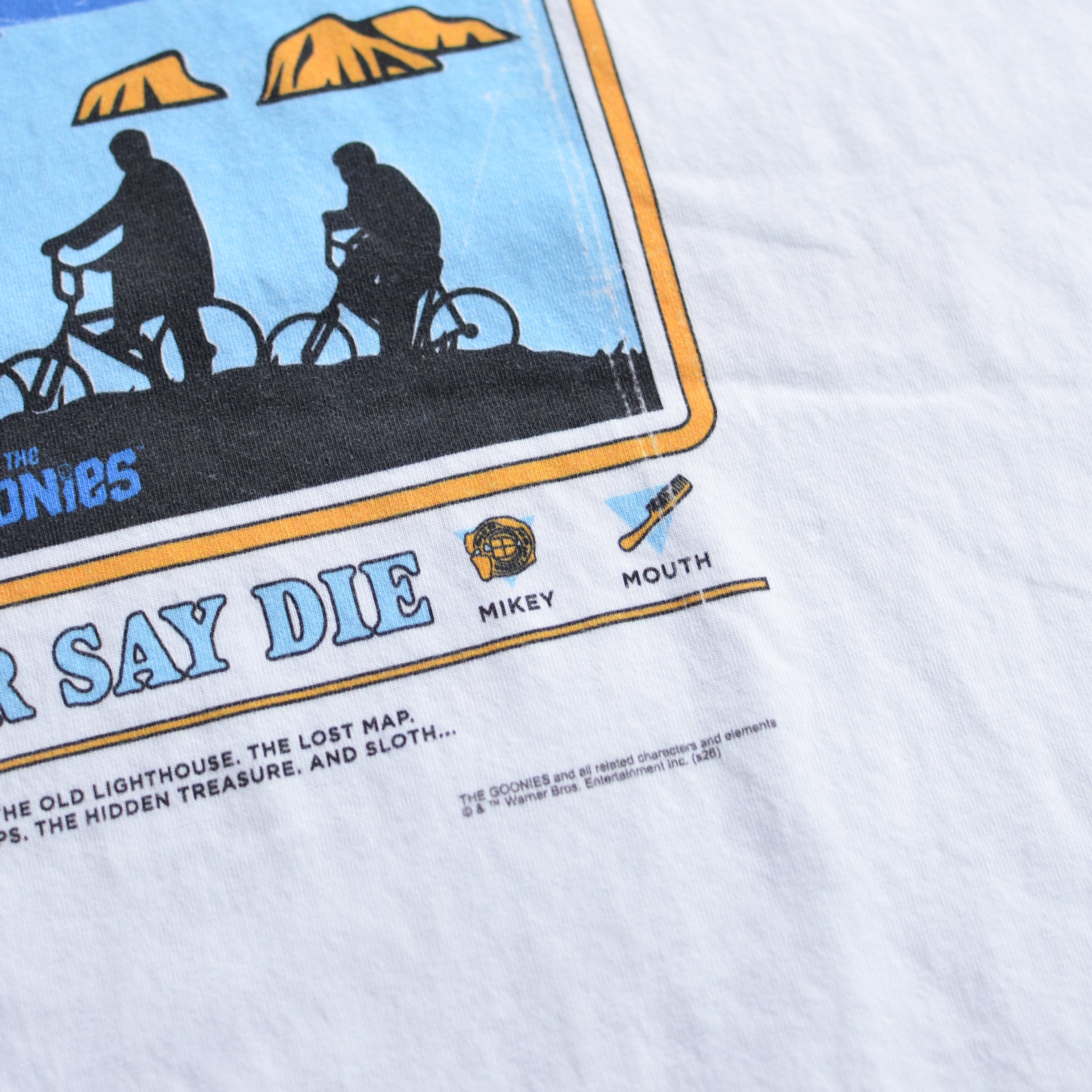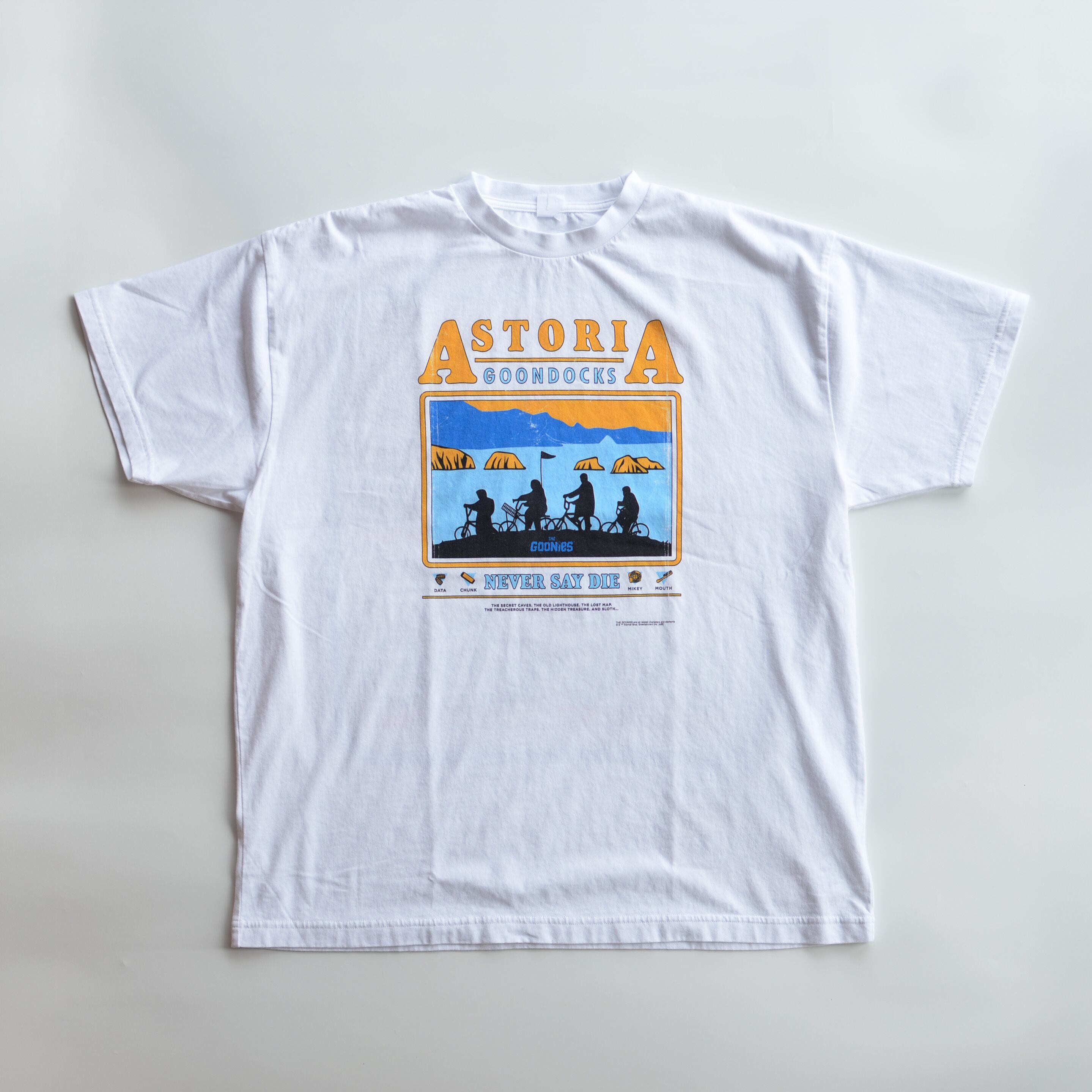 自転車に乗った少年たちのシルエットは、映画の主人公グループ「グーニーズ」のメンバー(マイキー、チャンク、データ、マウス)。